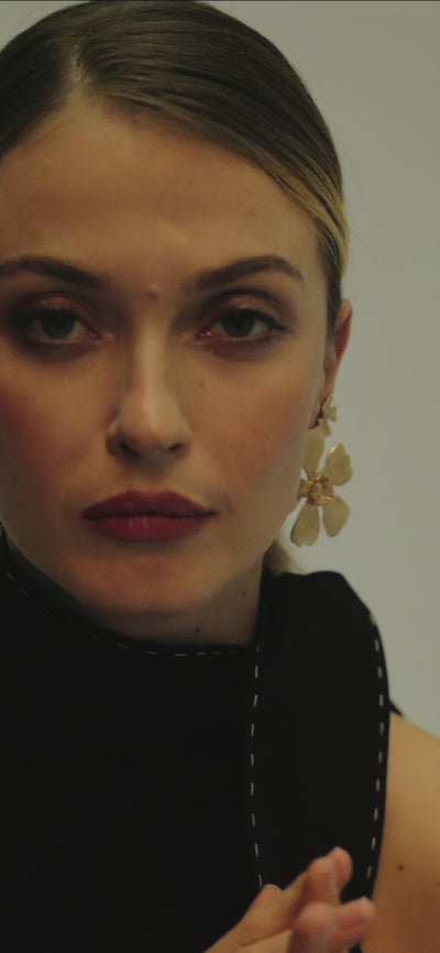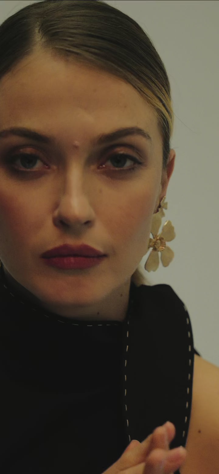 A flower that draws the eye. The Anemone earrings frame face with a full, generous presence. Engraved petals, alive, catch and reflect the light with ease. Wearing them is both a simple and a decisive gesture, a way to bring a gentle, joy-filled strength to the face. Like when, as children, we would gather flowers to tuck between our fingers or into our hair.