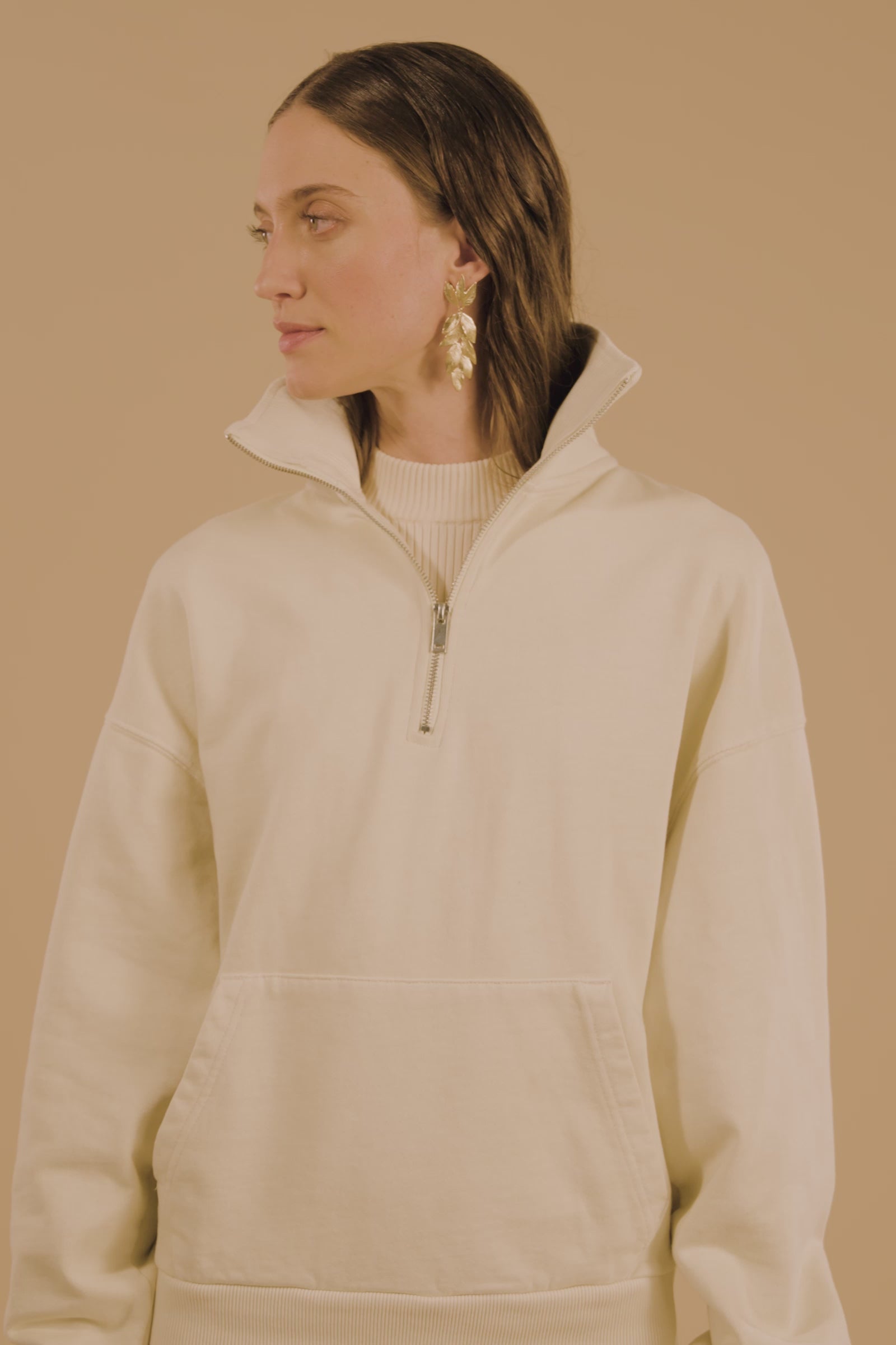 A cascade of golden leaves illuminates the face. The Foliage Earrings add a touch of nature and poetry to any look. A fusion of art and nature, worn with grace.