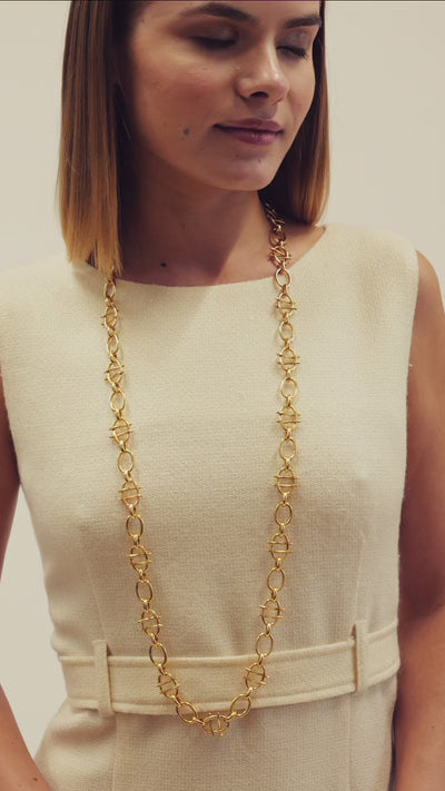 The Nessus Alpha Necklace is a sculptural jewel that speaks of connection and purpose, inspired by Giuseppe Capogrossi’s geometric motifs. A visual code you can wear.