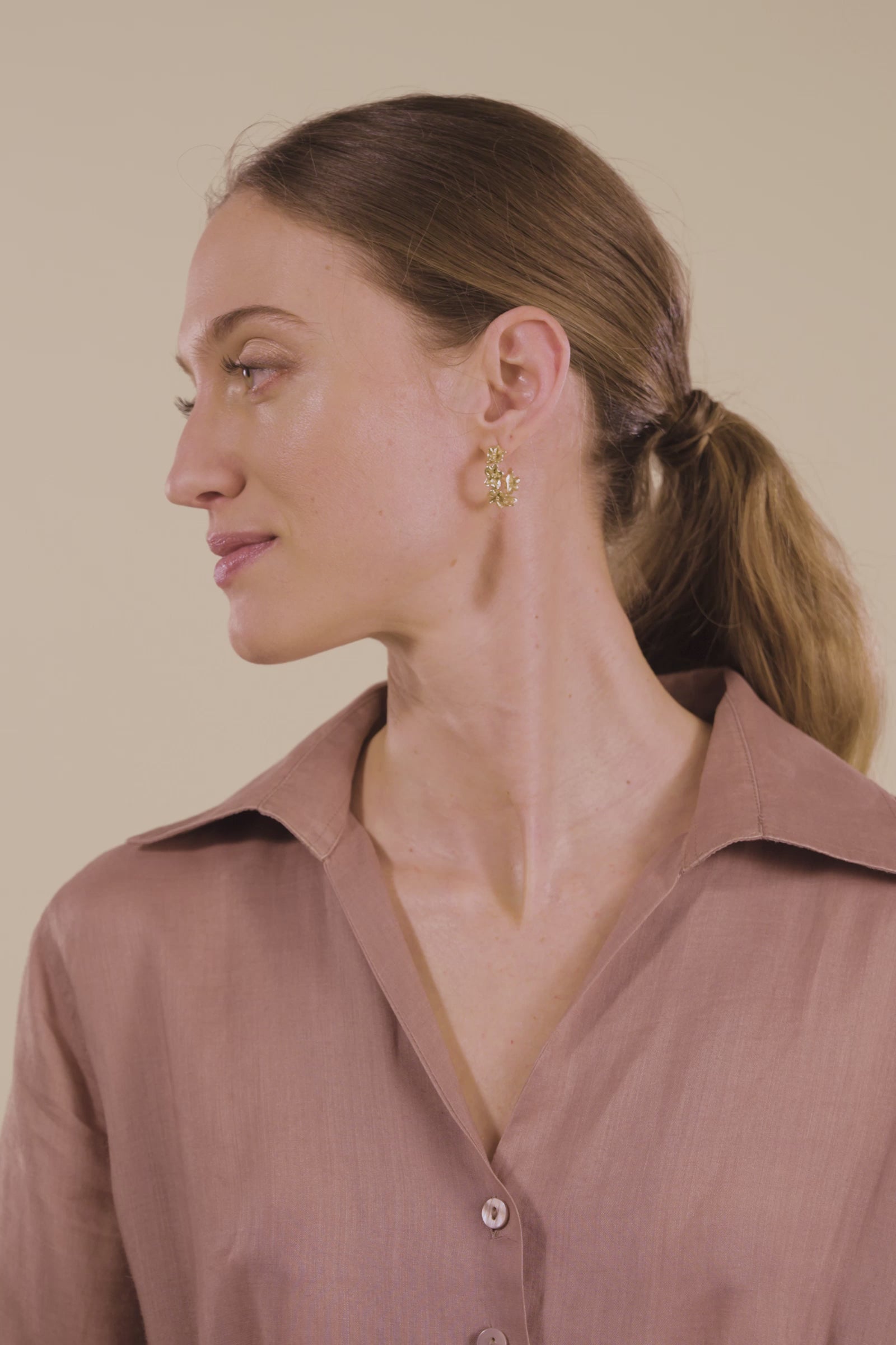 These delicate earrings pay homage to nature’s poetry, capturing the fleeting beauty of a flower in a golden touch. Their harmonious shape gently embraces the earlobe. An homage to nature, for those who desire a romantic and refined accent.