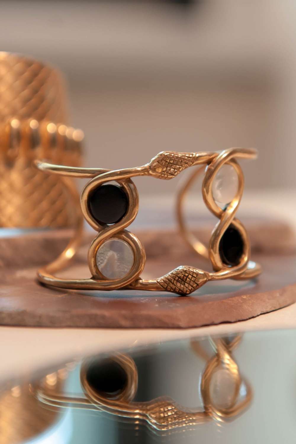 The Sunset bracelet is a wearable sculpture, with organic shapes that mold to the wrist. Its fluid lines evoke the warm hues of a sunset, capturing light and reflecting it back. A piece that celebrates the beauty of natural movement.